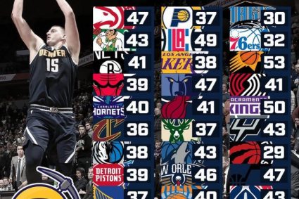 Cut 50 + against 2 teams, 40 + against 14 teams, 30 + against 12 teams, and 29 points against Raptors
