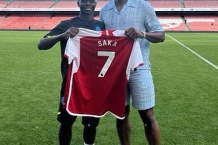 Smile! Leonard won the gunner star Saka No. 7 jersey at Arsenal spectators